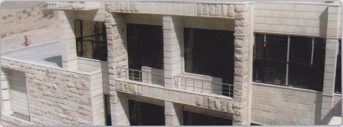 The building was implemented as a concrete structure shape; the outside faces were coated by stone.