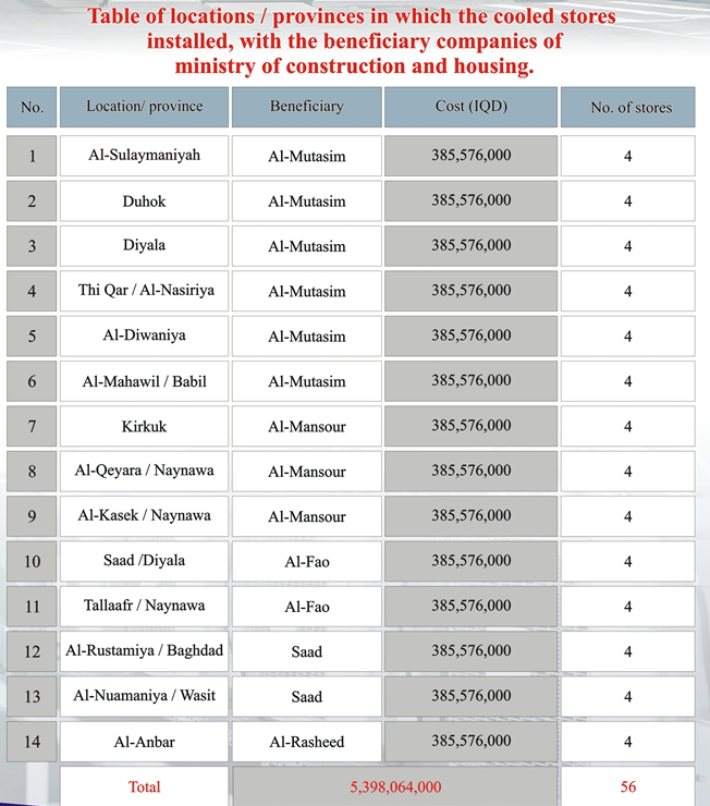 Project Description :- Supply, erection , commissioning and maintenance of (56) cooling stores for the self – sufficiency project in (14) locations , (4)stores in each location in (10) provinces as shown in the next page . The project was implemented in partnership with Ofaq Al-Jazira general contracting co., Ltd.